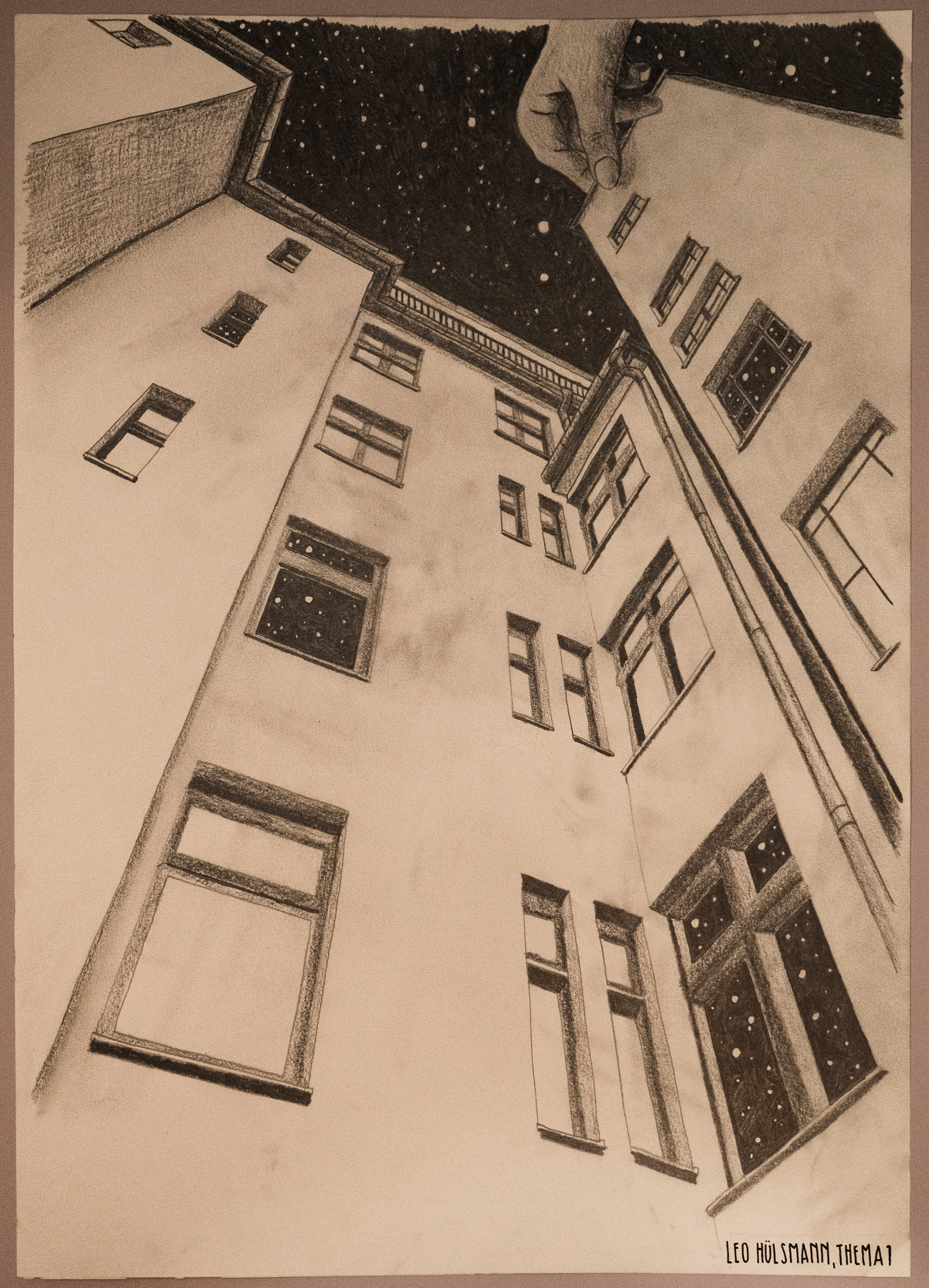Freie persönliche Bleistiftzeichnung zum Thema "Fassade".