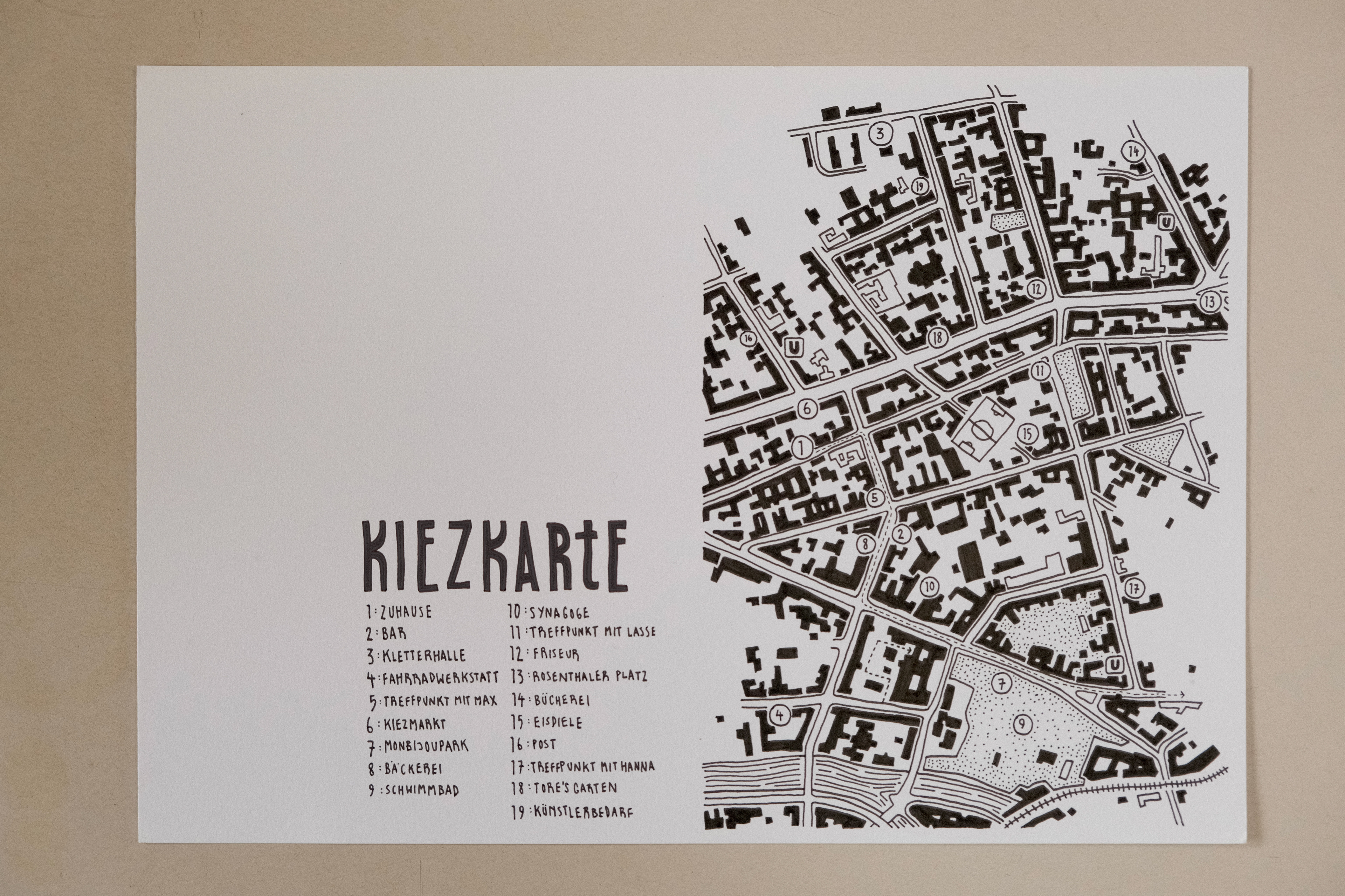 Persönliche Karte eines Berliner Kiez. Analoge Illustration, DIN-A4.