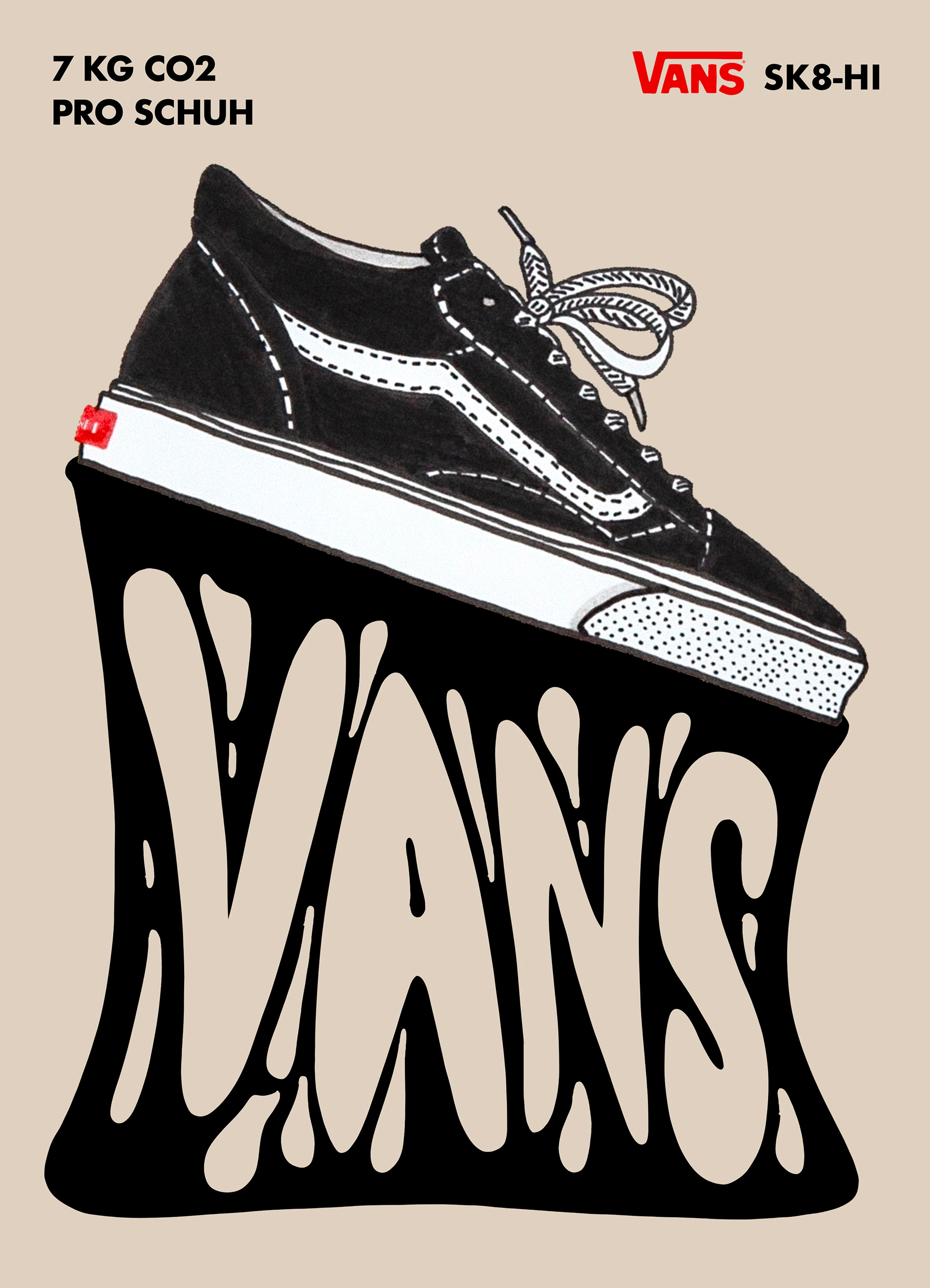 Plakate als Antiwerbung für Fast-Fashion Sneaker. Analoge Zeichnung und digitale Grafik, DIN-A3.