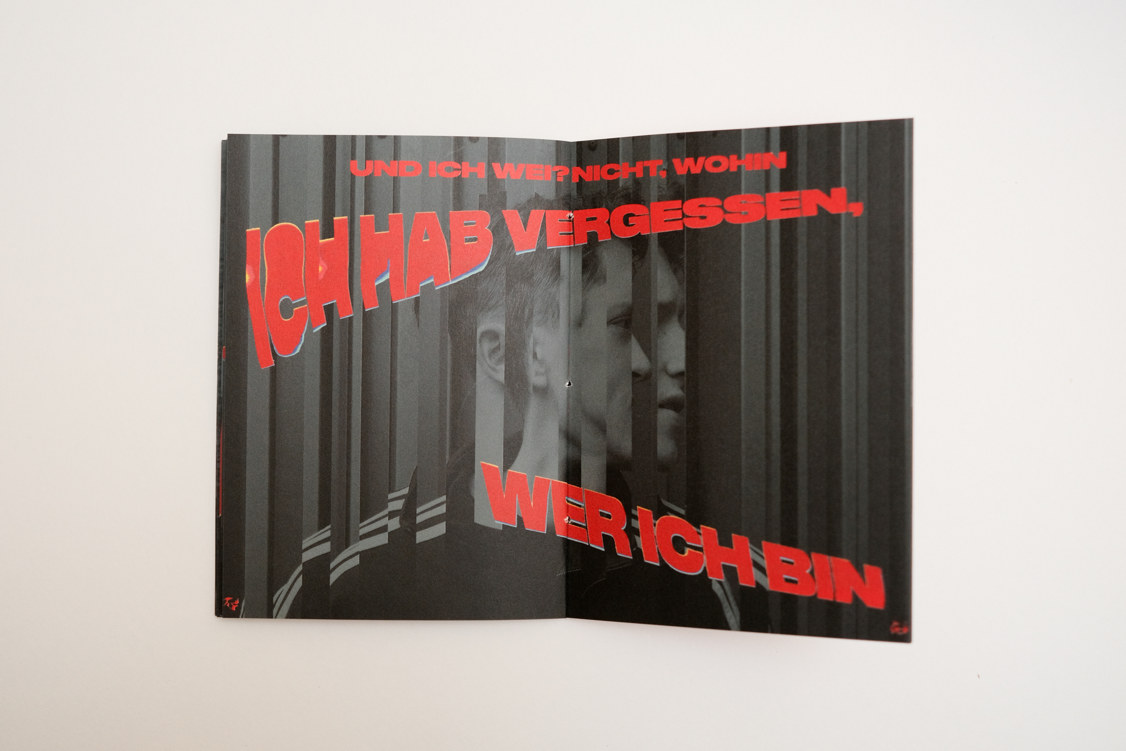 Freie Gestaltung eines Hefts zum Song "Vertigo" von Edwin Rosen. Scan- und Collagetechnik, 24 Seiten.